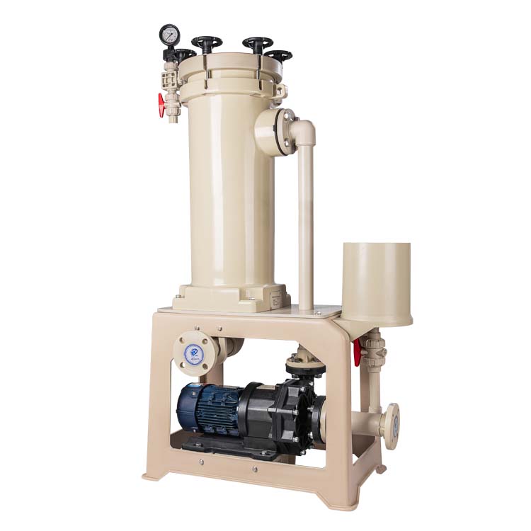 3.檢查入口管路底閥到液面高度是否合適,在液面50公分以下,因?yàn)楸闷治艽?,如果入口伸到藥液少?/span>50公分可能會(huì)將液面的空氣一起吸到泵浦里導(dǎo)致電鍍過濾機(jī)有氣泡。